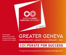 From 30 January to 1 February 2018, the cross-border conurbation of Greater Geneva will be hosting, at the Palexpo Exhibition and Congress Centre, the 19th edition of the European Energy Transition Conference. Close on 3,500 participants – representatives of the public authorities, the economic and academic worlds and the civil society, are awaited to exchange views on and discuss their commitment to energy transition around the leitmotif « Cooperate in order to make a success of energy transition ».