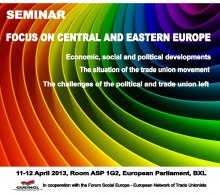 GUE/NGL seminar, in cooperation with the Forum Social Europe (European network of trade unionists) Focus on Central and Eastern Europe Economic, social and political developments, the situation of the trade union movement and the challenges of the political and trade union left