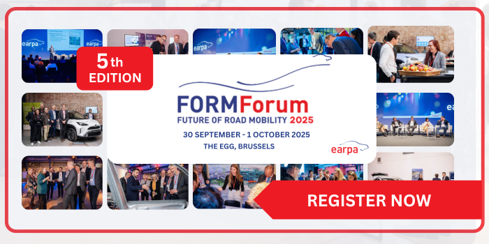 The European Automotive Research Partners Association (EARPA) is pleased to host the 5th edition of the Future of Road Mobility Forum – FORM Forum 2025 which will take place on 30 September – 1 October 2025 at The EGG in Brussels.
